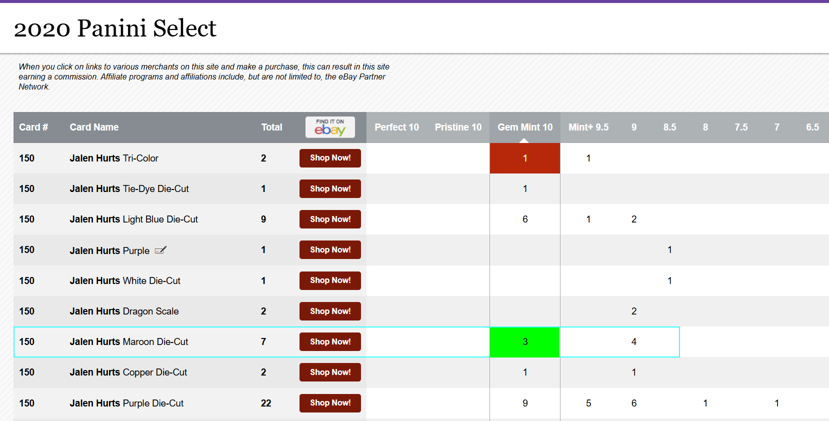 Score big with this 2020 Panini Select Premier Level Maroon Die-Cut #150 Jalen Hurts (RC) ππ₯! Rookie Super Bowl-winning QB, perfectly graded CGC 10 πβ¨. A rare gem with only 3 in the POPβgrab yours and own a piece of football history! ππ